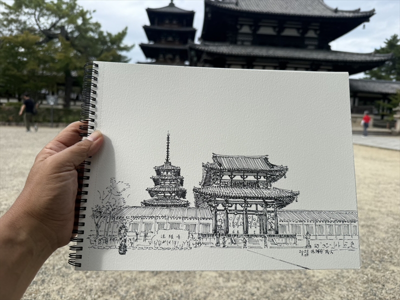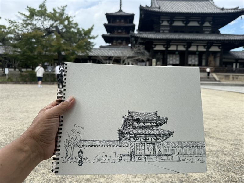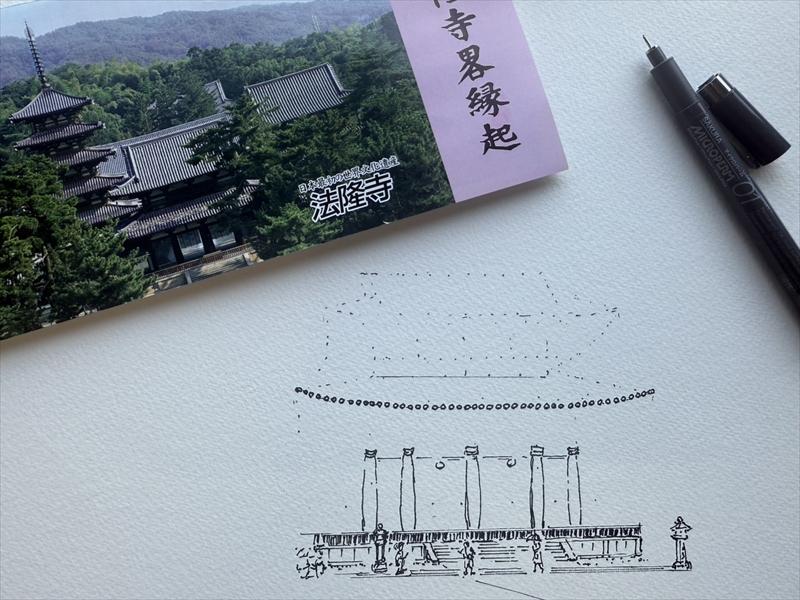 ペン画・デッサン 法隆寺